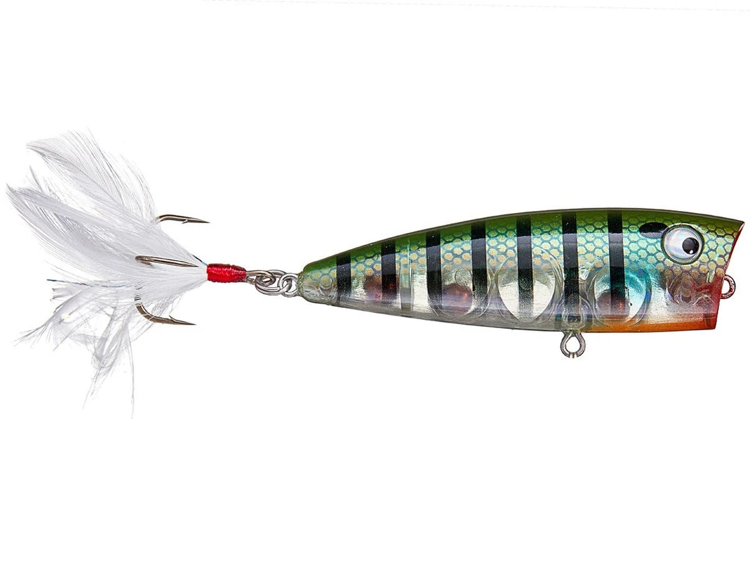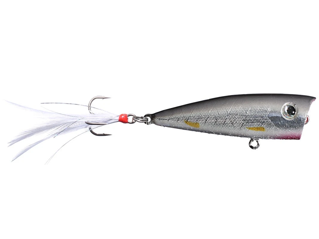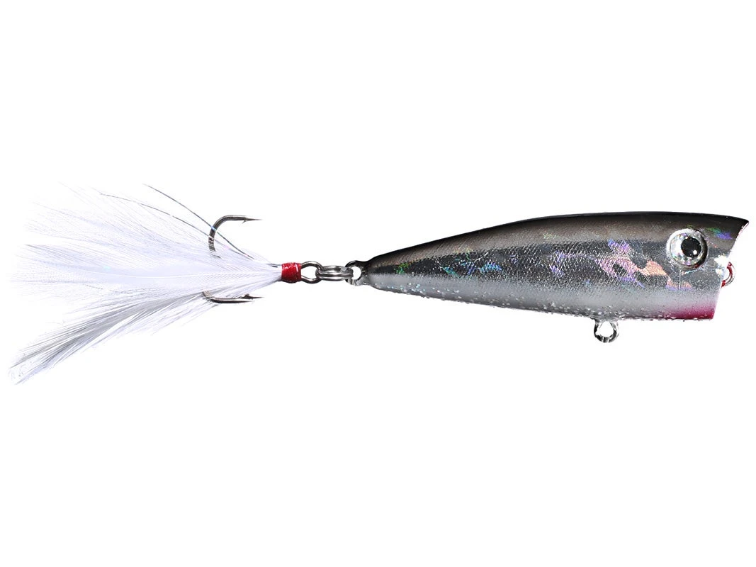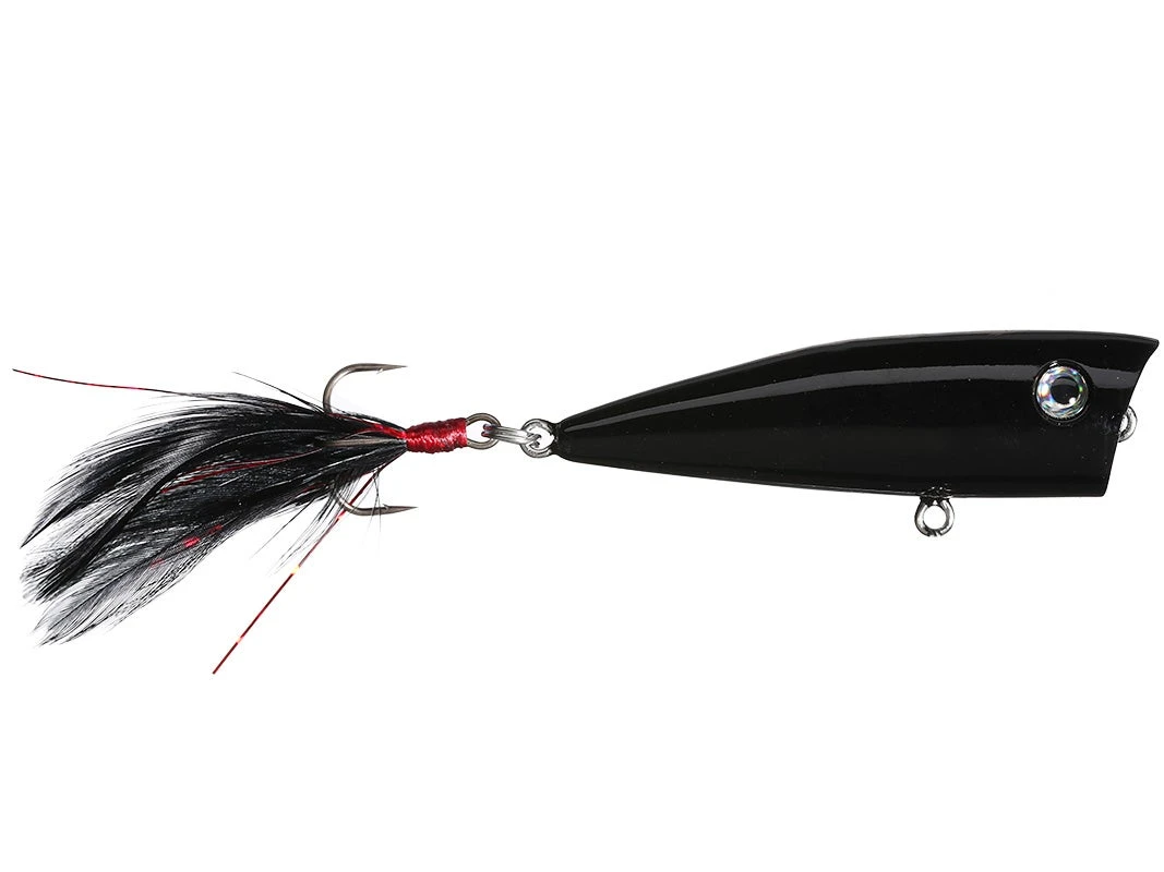 These hard to find lures feature beautiful, intricately painted finishes, sharp hooks and long flowing tails that move and undulate long after the bait has stopped. But the secret is in the design. The cup up front is made to spit just the right amount of water in front of the lure and is tuned to give just the right popping and splashing sound to imitate a baitfish in trouble on top of the water. The Lobina Ricos are just better by design. Prismatic 3D eyes round out the package for a popping bait that cannot be beat.